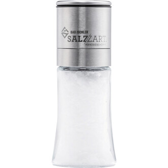 In der hochwertigen BAD ISCHLER Salzzart Mühle mit verstellbarem Keramikmahlwerk lässt sich das Finishing-Salz auf Gerichten, wie Steaks, Carpaccios, Grillgemüse und vielem mehr, genau dosieren.